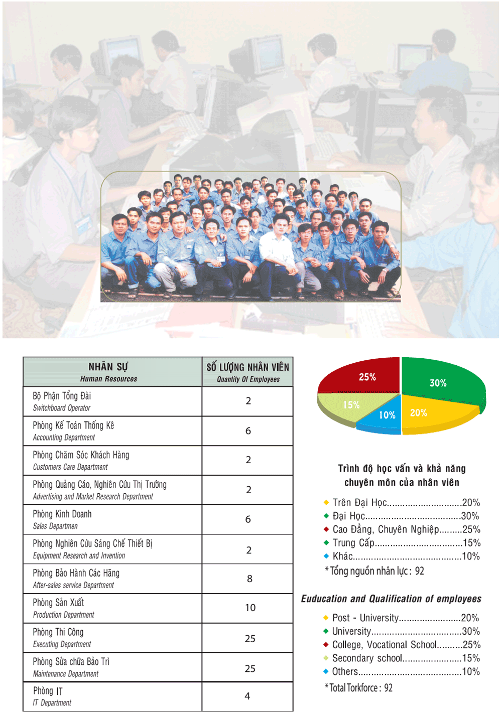 Trong chiến lược phát triển nguồn nhân lực của mình, Công ty đặc biệt chú trọng đến việc xây dựng, kiện toàn và cũng cố đội ngũ cán bộ quản lý, điều hành doanh nghiệp. Trong những năm qua, chất lượng đội ngũ cán bộ quản lý đã được nâng cao rõ rệt, tất cả các vị trí đều đáp ứng tốt yêu cầu của tiêu chuẩn chức danh, có trình độ chuyên môn cao phù hợp với yêu cầu công việc trong hiện tại và tương lai.