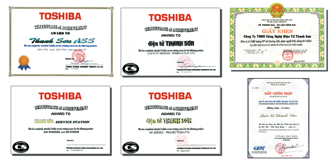 Chứng Nhận Đào Tạo Huấn Luyện Công Tác Bảo Hành Của Hãng TOSHIBA